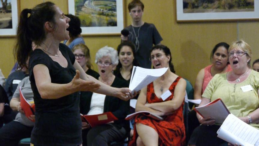 Image: Flip Case leading the Whittlesea Community Carols Choir, via Andrew Garton.