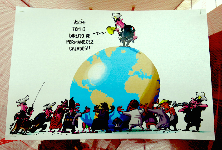 <p>“Vous avez le droit de garder le silence”. Une affiche exposée lors du <span class="caps">FSM</span> 2015 à Tunis.</p>